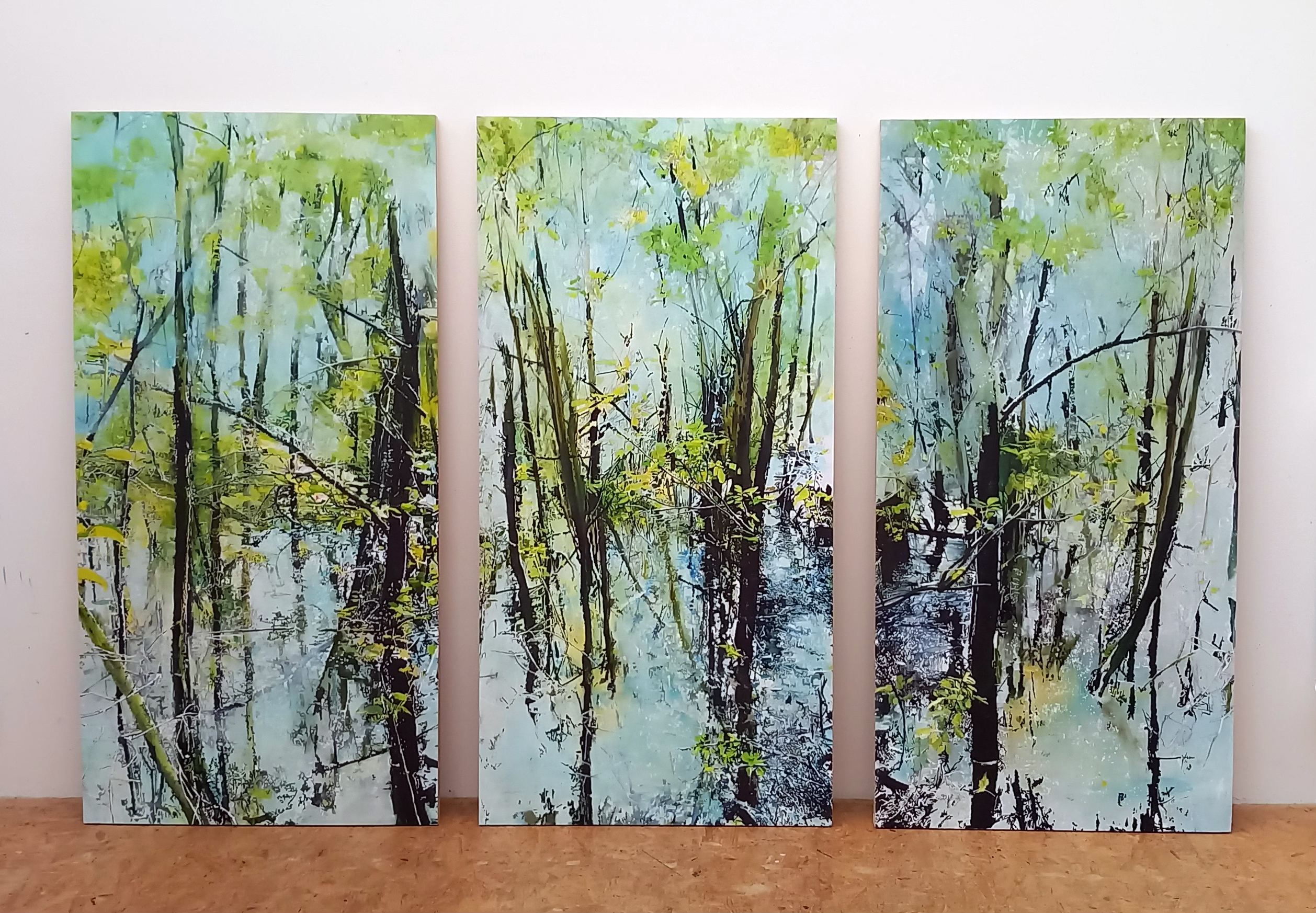 Après la pluie, haut de France. 3 peintures de 60 x 120 cm. Huile sur papier marouflé sur châssis. mars 2026