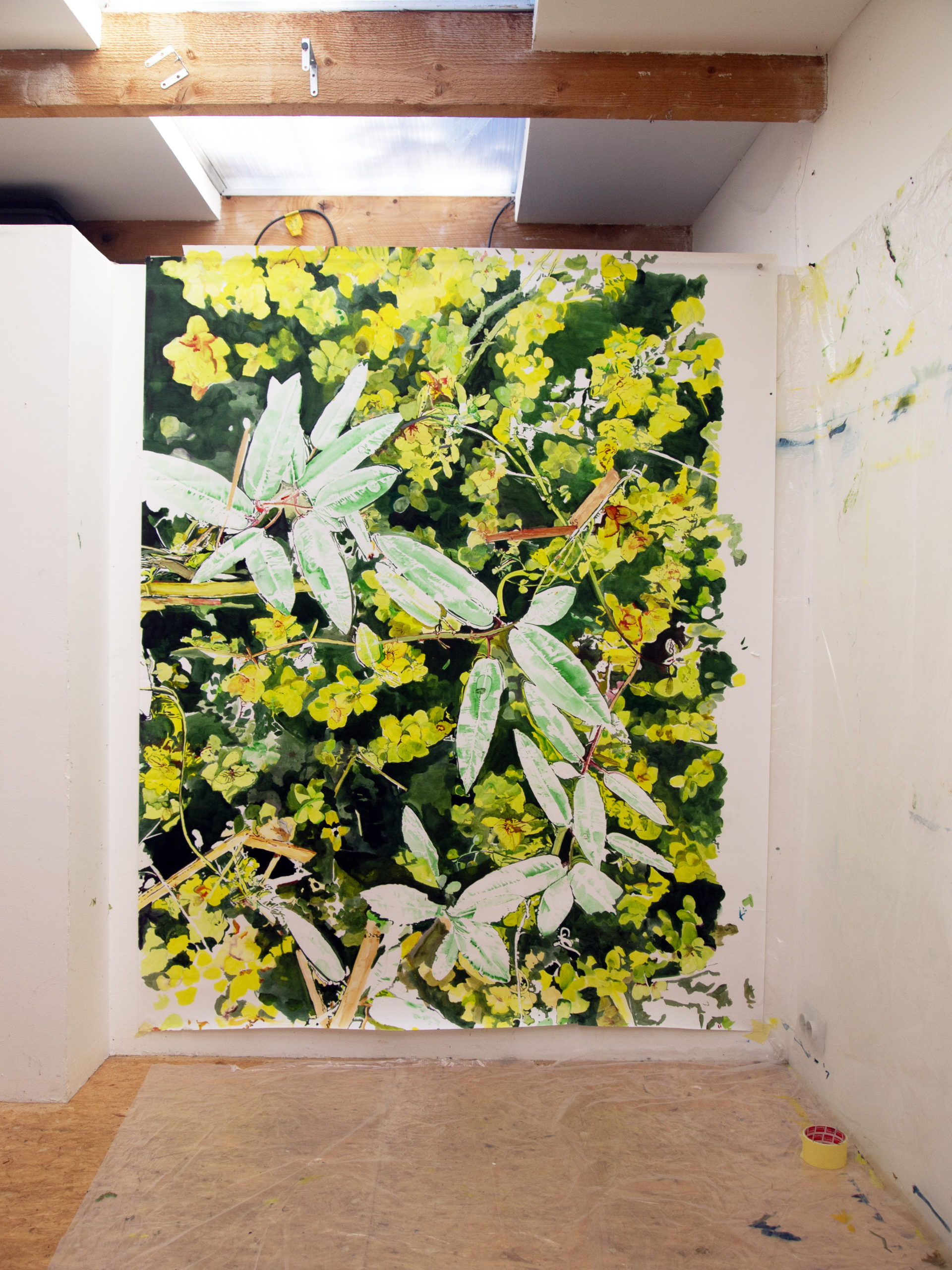 Les rencontres inopinées du dessin. PPGM. RoubaixDiptyque, huile sur papier. 150 x 160 cm. Atelier Juin 2025