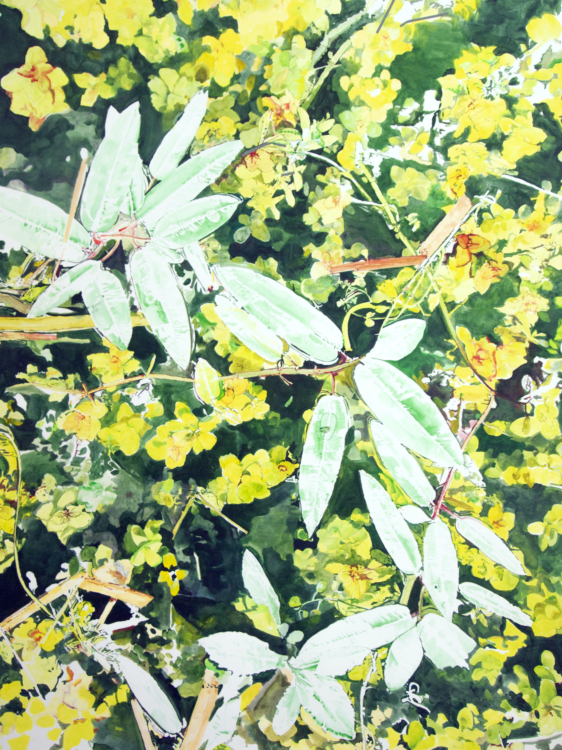 Après la pluie, 60×120 cm. triptyque. Huile sur papier marouflé sur médium. 2026. Collection particulière.