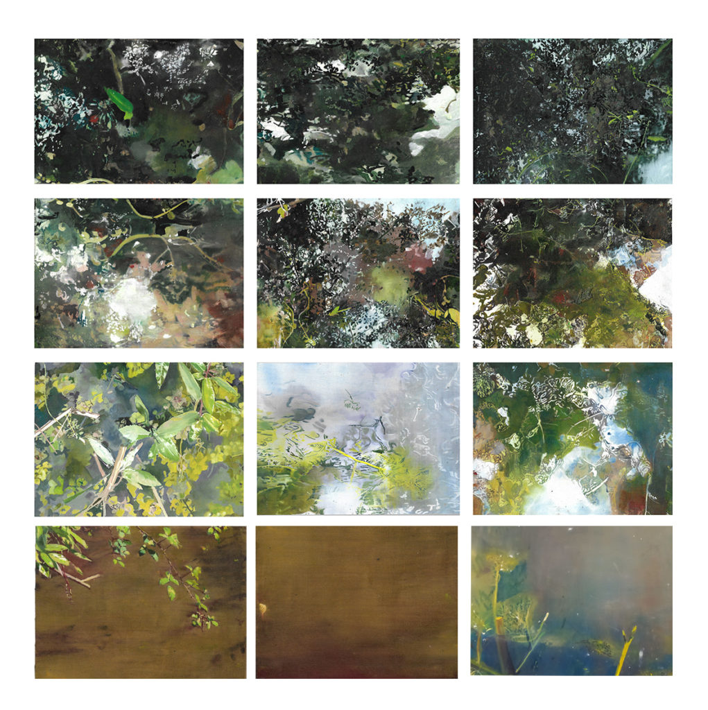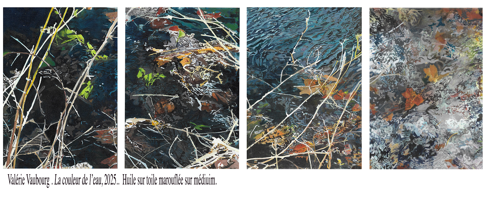 La couleur de l’eau, 4 peintures à l’huile marouflées sur médium. 2025