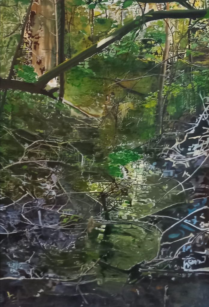 La couleur de l’eau, Seclin. 170 x 120 cm. Huile sur papier. 2025.